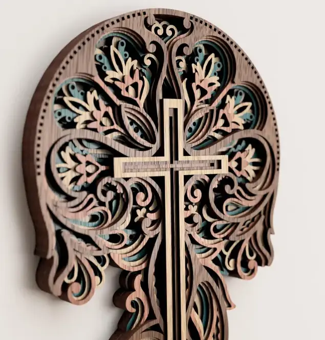 Het 3D Mandala Kruis Ornament is zorgvuldig vervaardigd om de subtiele lagen en complexe patronen van het ontwerp perfect te benadrukken. De gelaagde structuur geeft diepte en textuur, waardoor het ornament een visueel aantrekkelijk en verfijnd decoratief stuk is. Dankzij de symmetrische elegantie en vloeiende vormen kunt u dit ornament moeiteloos integreren in elke ruimte, van modern tot klassiek interieur.