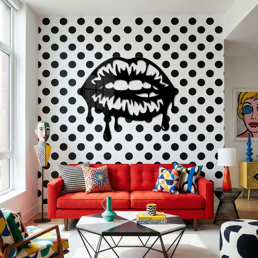 Breng een speelse en gedurfde sfeer in je interieur met deze unieke Dripping Lips wanddecoratie. Dit opvallende pop art design, gebaseerd op clipart-stijl, toont sensuele lippen met een subtiel bijtend effect en karakteristieke “dripping” details die zorgen voor een moderne, edgy uitstraling.