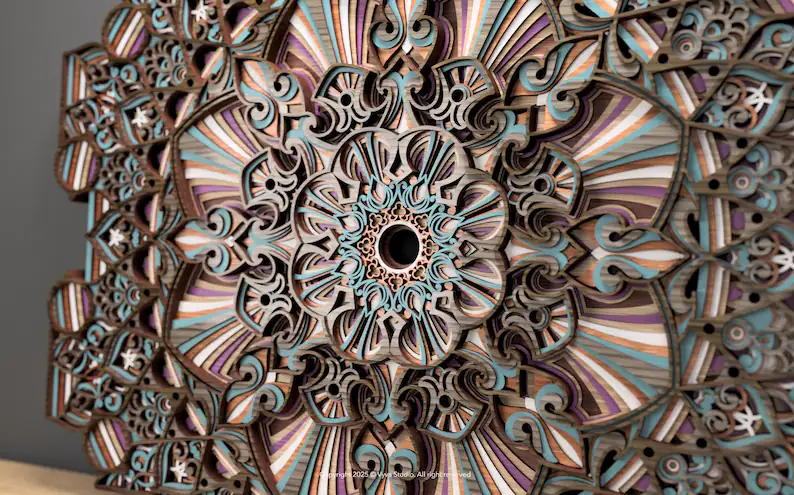 De Muurdecoratie Lost Spirit is meer dan alleen een visueel spektakel; het is een weergave van de levensstroom en innerlijke balans. Met behulp van geavanceerde lasertechnologie zijn de negen lagen perfect uitgesneden, waardoor een driedimensionale structuur ontstaat die zowel elegant als krachtig is. Het subtiele en complexe patroon van de mandala trekt niet alleen de blik, maar nodigt ook uit tot reflectie en rust.