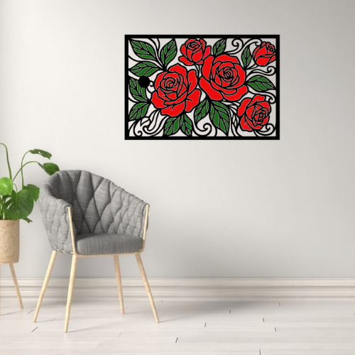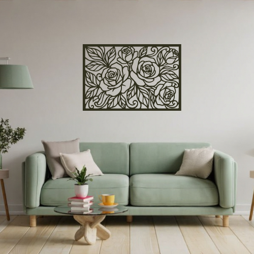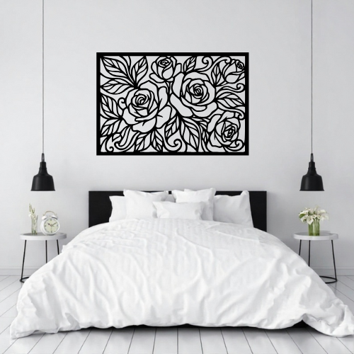 Breng sfeer en elegantie in uw interieur met deze laser gesneden wanddecoratie van rozen. De verfijnde rozenvormen zijn met hoge precisie uitgesneden, wat zorgt voor een luxe en moderne uitstraling. Dankzij het strakke design is deze wanddecoratie direct klaar om op te hangen en vormt het een echte blikvanger aan elke muur.
