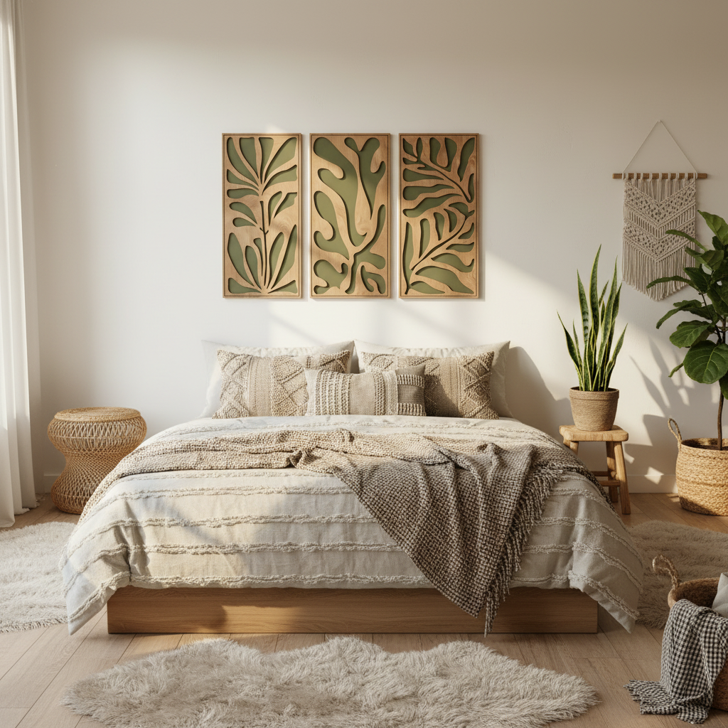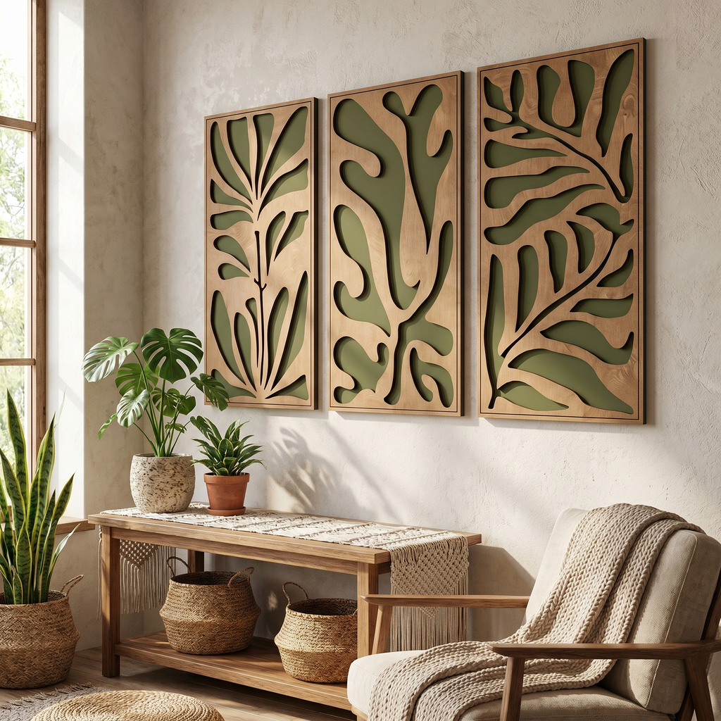 Deze wanddecoratie is meer dan alleen een muuraccessoire – het is een kunstwerk vervaardigd uit hoogwaardig, gelaserd hout met een prachtig gelaagd ontwerp. De botanie-geïnspireerde silhouetten en het organisch gevormde 3D-effect voegen textuur en diepte toe aan elke wand. Geïnspireerd door biophilic design, biedt deze decoratie een serene verbinding met de natuur.